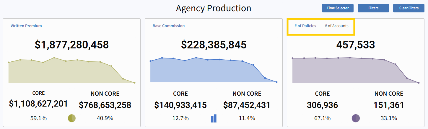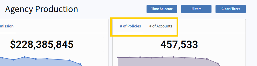Number of Policies or Number of Accounts(Toggle between the two options on the top right card - see screenshot below)
