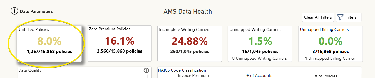 - Click the Unbilled Policies box. These are policies that have not been invoiced and have $0 revenue OR $0 premium associated on the accounting side of your management system.