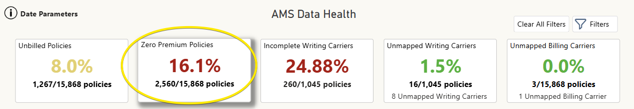 - Click the Zero Premium Policies box. These are policies that do not have premium entered. In other words, the download has not come in (or failed) OR the account manager has not manually entered the premium for a non-downloaded policy.