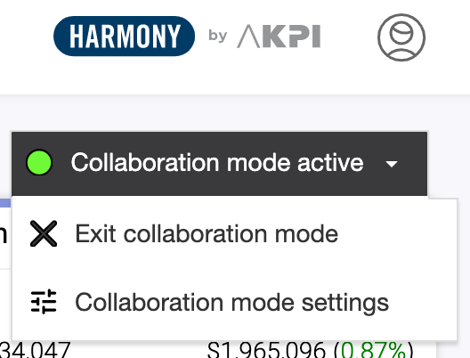 4. In the right-hand corner of the screen, use the pull-down menu to change your settings/choices, or exit Collaboration Mode.