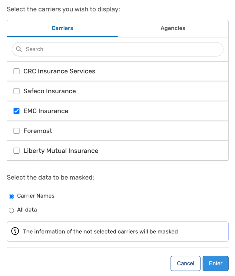 2. Select the carriers or agencies you wish to display.