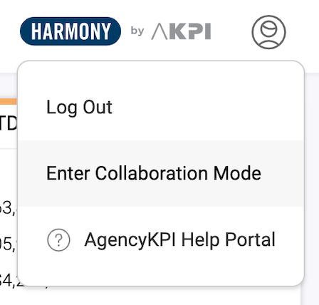 1. Click Core Performance in the main menu. Then click the User Icon in the upper right-hand corner of your screen, and click Enter Collaboration Mode.