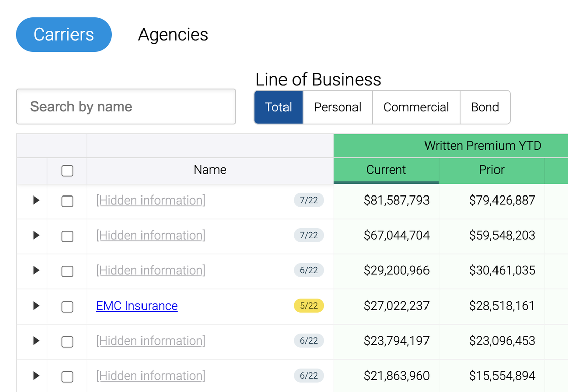 In this example, only EMC Insurance is selected.