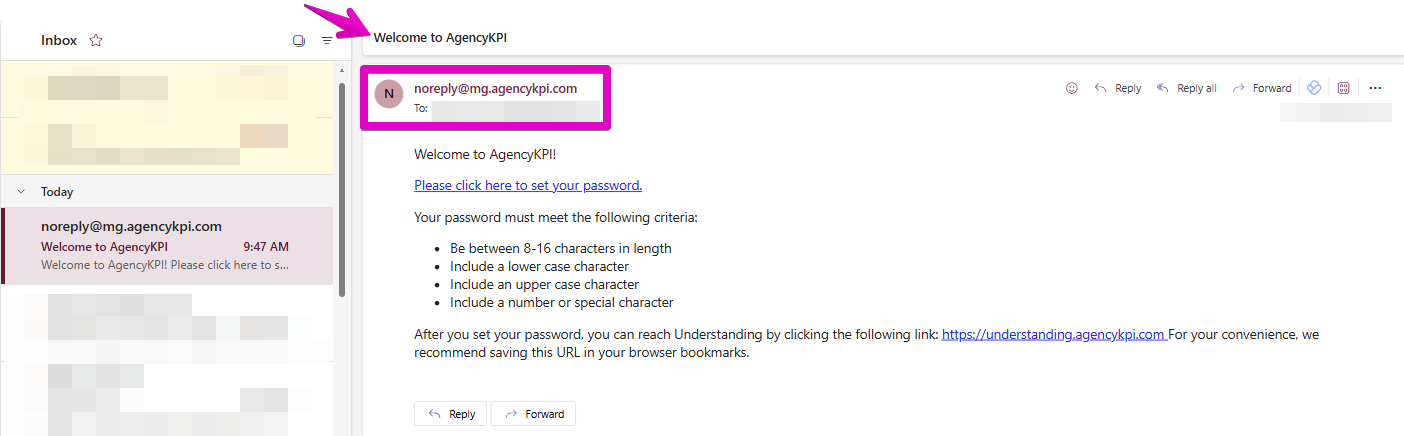 You’ll soon receive an email from us, sent from a noreply address (shown below).