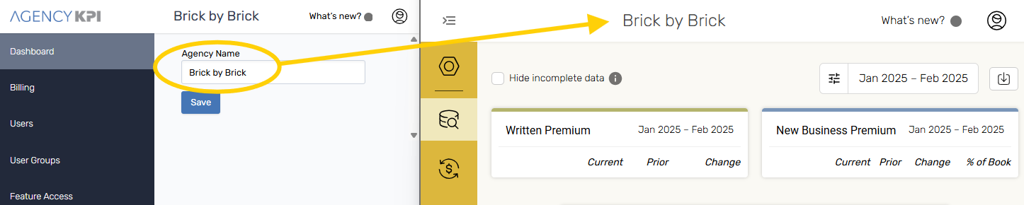 Currently, you have access to update your agency’s display name — this is how your agency will appear on the dashboard within Understanding.
