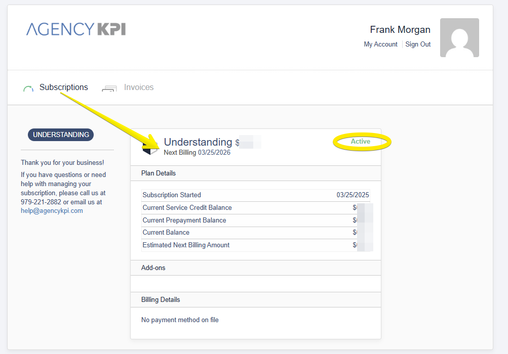 When the new page opens, you’ll land on the Subscription tab. Here you can: