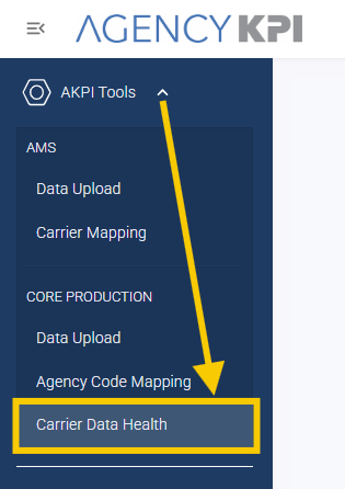 Data Health is your behind-the-scenes hero—designed to save you hours and bring clarity to your Carrier Production uploads. Located within your Harmony under the AKPI Tools menu, this feature is part of the Core Production suite and is your go-to resource for auditing and troubleshooting Carrier data without digging through source files.