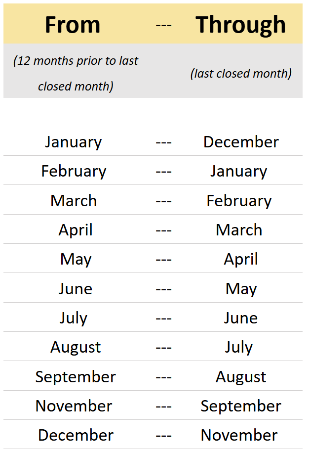 Upload a rolling 12 months of data with each update.