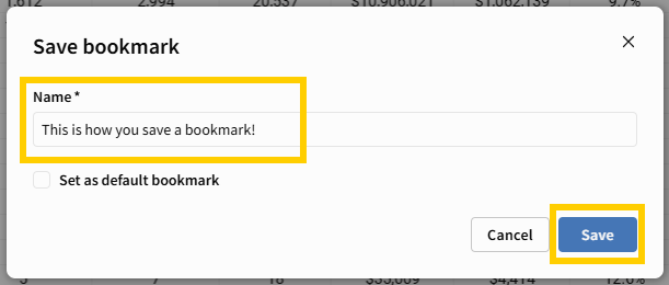 (Optional) To make this your new default view, check “Set as default bookmark.”