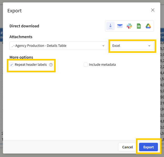 Select Excel as the file format.