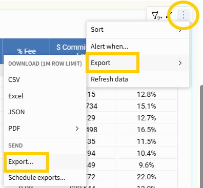 Click the three-dot menu in the upper-right corner of the table.