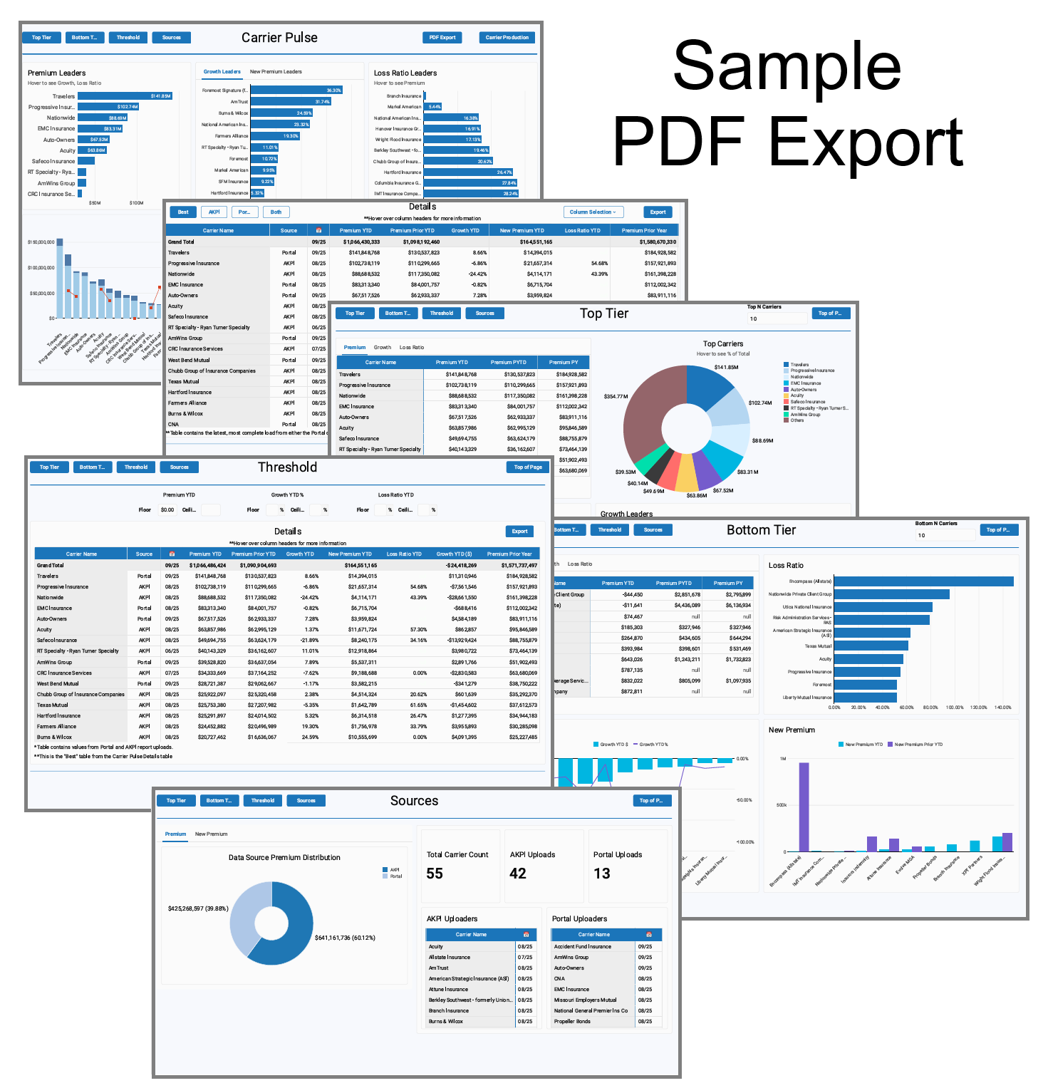 Bottom Tier – focuses on underperforming carriers, making it easier to spot those with weaker growth, declining premium, or poor loss ratios.