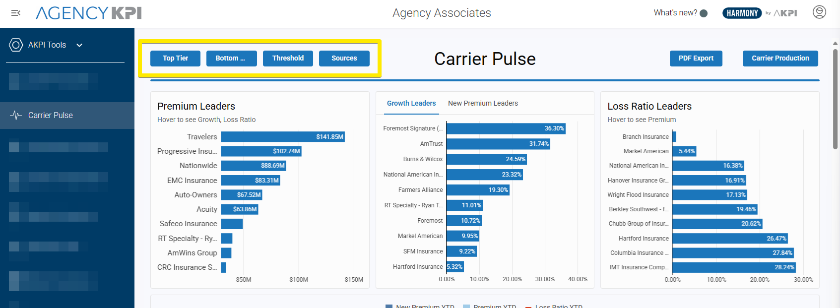 When you’re ready for granular, agency-level or line-of-business analysis, use the Carrier Production tab as your detail view.