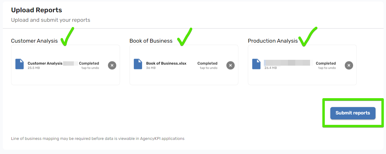 7. The Submit Reports button will light up blue. Click "Submit Reports" to complete the upload.