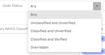 - CLASSIFIED AND VERIFIED - a NAICS code was returned, and the user has approved the code.